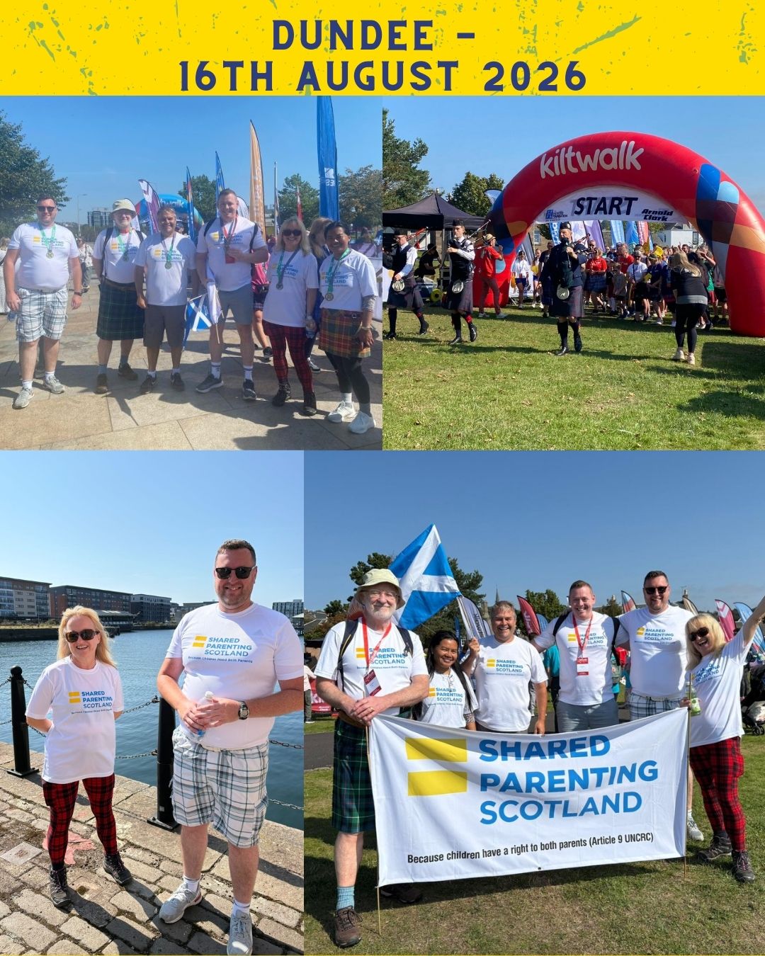 Taking part in the Kiltwalk is not only a great day out (and way to make sure you get your steps in!!) but it also raises awareness of shared parenting as walkers wear our t-shirt allowing many to see our message.